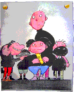 De klas bedacht een goed einde voor het verhaal en maakte er een toneeltje van.