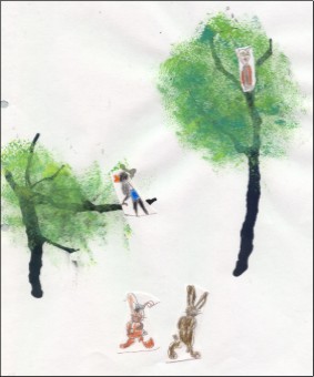 Hoe arme ekster Janka door de konijnen wordt uitgesloten. Hoe de wijze uil raad brengt.